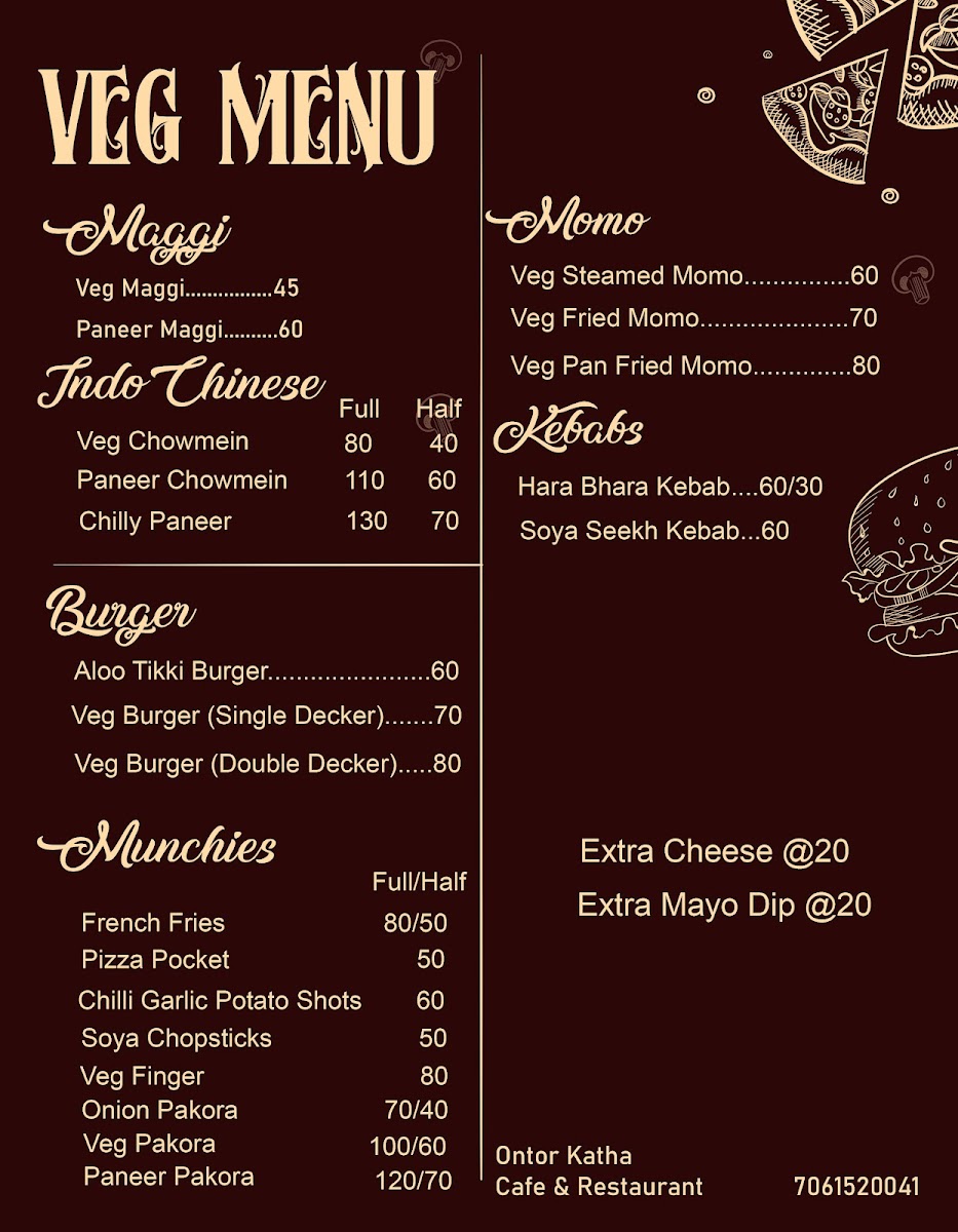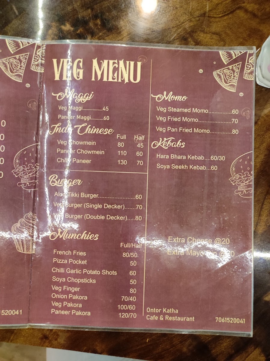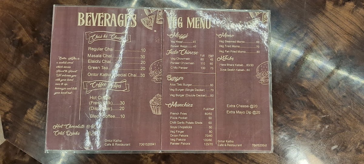 Welcome to Ontor Katha, a charming café nestled in Sahibganj, Jharkhand, where delightful flavors meet affordability. This inviting eatery offers a wide array of dishes, perfect for any palate. Whether you're in the mood for a crispy Aloo Tikki Burger at just ₹60 or a flavorful Hara Bhara Kebab, you'll find that each bite is delectable and fresh.